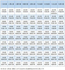 ※自分がどの星かは、生まれ年で決まります。「九星 早見表」で検索すると、すぐに確認できます。